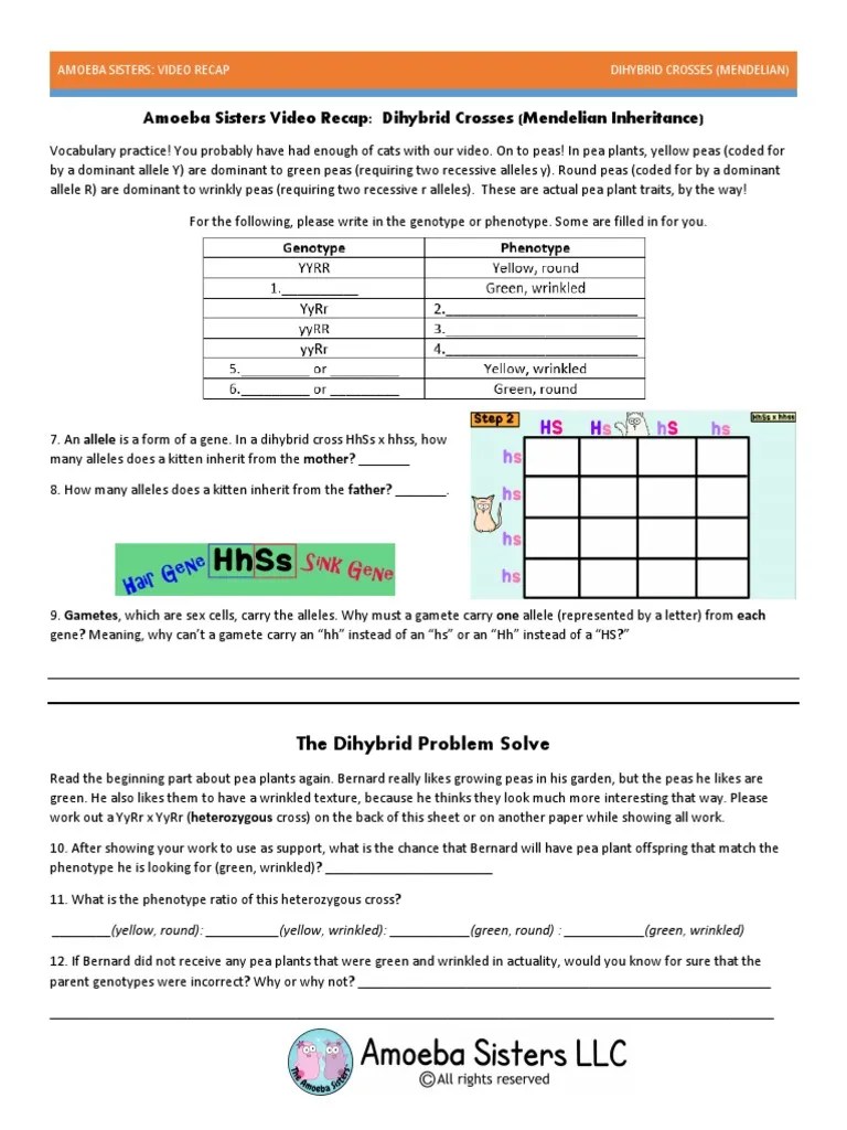 Monohybrid Cross Amoeba Sisters Answer Key / Mrs. Paul - Biology: Biology 2016-2017 Charts/Notes - This is the official answer key for our website's monohybrid crosses handout.. This amoeba sisters monohybrid crosses answer key pdf, commonlit answers. Monohybrid crosses (mendelian inheritance)vocabulary practice! This is the official answer key for our website's monohybrid crosses handout. Video recap monohybrid crosses (mendelian)amoeba sisters video recap: Monohybrid cross answer key monohybrid .